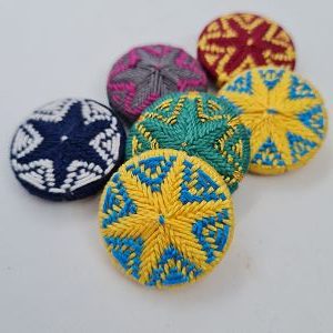 Runde Rohlinge (25, 28 oder 30 mm), Häkel-/Perlgarn, Schere, Nadel